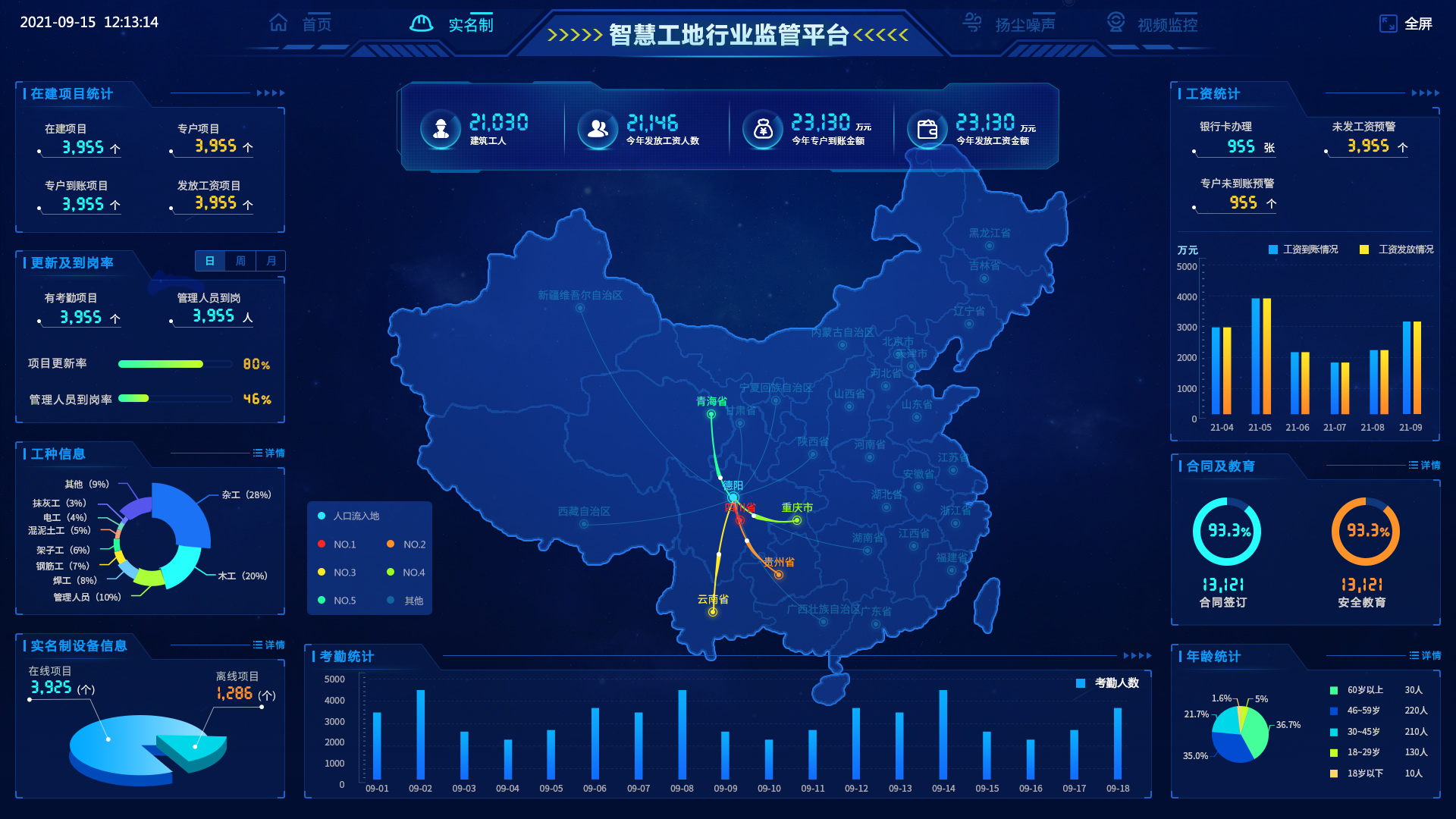 管理標準化形成統(tǒng)一綜合性預測預警、智能分析、應急指揮等功能,實現建筑業(yè)從業(yè)人員的精細、標準、數據化管理,同步解決人證脫節(jié)問題。